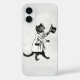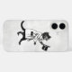 Un coque iphone avec un dessin vintage en noir et blanc d'un chat portant des lunettes et un manteau faisant glisser son chapeau supérieur sur un arrière - plan gris clair imitant_toile (facultatif). Customisez-le pour ajouter votre nom ou message, même enregistrer votre design pour plus tard.