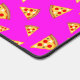 Des pizzas cool et amusantes en tranches motif sur rose vif. Pizza juteuse à croûte croquante, fromage, salami, champignons champignon, olives et une saupoudrée d'origan.