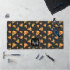 Tranches de pizza cool et amusantes motif sur gris foncé Monogram Desk Mat. Personnalisez avec votre initiale et votre nom personnalisés. Pizza motif cadeau unique pour les gourmands, restaurateurs, pizzerias.. Pizza juteuse à croûte croquante, fromage, salami, champignons champignon, olives et une saupoudrée d'origan.