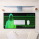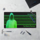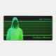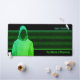 Un design sur le thème du cyber dans les tons vert sur noir, avec un effet grungy cool sur le hacker à capuchon et un arrière - plan de 1 et zéros binaires. Votre nom, les détails de l'entreprise ou d'autres textes apparaîtront dans un vert éclatant coordonné. Il y a de la place pour un slogan commercial, un titre de travail, une blague de sécurité ou un slogan de piratage dans le coin supérieur droit dans des lettres colorées d'eau vive.