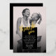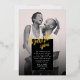 Célébrez votre gratitude avec élégance grâce à notre carte de Mariage Simple Chic Merci. Son design minimaliste noir et blanc, orné d'un élégant script et d'un véritable papier d'or sur les mots "merci", dégage un raffinement certain. Doté d'une belle photo du couple heureux à l'avant et d'un arrière - plan noir chic à l'arrière, il offre la toile parfaite pour la personnalisation. Qu'il s'agisse d'exprimer des remerciements pour les cadeaux de mariage ou des gestes sincères, cette carte résume le style et la sincérité, ce qui en fait un symbole intemporel d'appréciation pour vos proches.