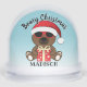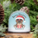 Cool Santa Bear Beary Christmas Custom text name Snow Globes. Holiday Accents with Cool adorable Brown Bear with Santa hat, red sunglasses and beautiful red Christmas gift box with gold ribbon and snow flakes in his lap. Personalize with your custom name and Merry Beary Christmas.