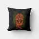 Ce coussin noir est décoré d'une statue de tiki cool et de feuilles de palmiers en faisant un bel accessoire pour une chambre, une terrasse, un patio ou un espace piscine masculin.