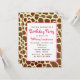 Une invitation élégante de fête d'anniversaire parfaite pour l'adulte ou l'enfant. Arrière - plan d'impression de girafe de caractéristiques d'invitation sur l'avant et le dos. Personnalisez le texte sur l'avant avec des détails de votre occasion.