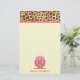Papeterie comportant une illustration d'une copie de girafe et d'un hibou rose en bas. Personnalisez avec votre nom sous le hibou. Le dessus est copie de girafe avec l'équilibre rose.