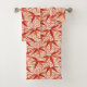 Ensemble de serviette dans une copie vintage de William Morris du feuille et des vrilles en bambou, numériquement augmentée et colorée dans un effet doux, texturisé, en pastel de crayon - nuances de milieu à la mandarine foncée et la rouille sur un arrière - plan blanc