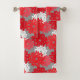 Ensemble de serviette dans une prise moderne sur une copie florale japonaise traditionnelle de kimono - fleurs stylisées en rouge chinois profond, le rouge de corail, et le blanc sur arrière - plan gris/gris foncé de graphite
