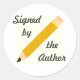 Un autocollant étiquette pour indiquer un livre, un magazine, un article, une photo, etc, a une autographie d'auteur / illustrateur / artiste / photographe.