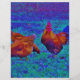 Coq et poules arc-en-ciel, bleu électrique