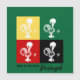 Le motif utilise les trois couleurs du drapeau portugais, en plus du noir, et la silhouette du coq de Barcelos en blanc comme seul motif. Le résultat est une motif qui a une allure moderne malgré l'antiquité du motif. Il s'est avéré très gai, cette combinaison. La motif est simple, évoquant le jeu des formes et des couleurs sur les nappes portugaises d'il y a des années. Il peut plaire à tous ceux qui aiment les coqs portugais colorés peints en argile ou la culture populaire portugaise. Ça peut être un bon cadeau d'anniversaire. Il est également toujours adapté pour souhaiter bonne chance à quelqu'un car le coq Barcelos est un symbole de chance, de justice, d'honnêteté et de vérité. Le texte est personnalisable.