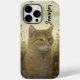 Conception de Chat unique créée à partir d'oeuvres d'art. Il dispose d'un chat Tabby Cat-Orange Gingembre Cute assis dans un jardin fleuri. Vous pouvez facilement personnaliser ce coque iphone en ajoutant votre propre nom.