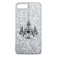 C'est une coque élégante pour iPhone 7 ornée d'un lustre élégant sur un fond bokeh argenté scintillant. Remarque : aucun paillette ou sequin n'est utilisé dans la fabrication de cette coque, le fond scintillant est une illustration photo.