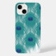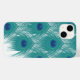 iPhone 14 coque est montré avec une belle impression de plumes paon. Customiser ou acheter tel quel.