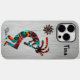Personnalisez ce boîtier de téléphone portable Kokopelli "One of a Kind" unique ! Il présente un Kokopelli Sud-Ouest en Turquoise, Orange et Noir Jouer la Flûte et Danser sous le soleil sur un Arrière - plan d'argent! Art graphique original créé par l'artiste Kerry Miller.