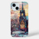 Un charmant iPhone 15 à peine là coque avec l'image d'une église d'hiver en vitrail.