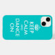 Gardez le calme et la danse sur iPhone 14 coque | Turquoise. Couverture téléphonique personnalisable. Créez votre propre drôle Gardez calme et continuez à parodier. Couleurs et texte arrière - plans personnalisés. Turquoise et autres couleurs.