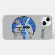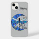 iPhone 14 Plus Coque en bleu et gris avec lune et libellules. Le nom "Paisley" peut être changé "Wild Soul" est permanent. Merci à Creative Fabrica pour certains des éléments du design.