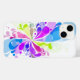 Le coque iPhone 14 est affiché en blanc avec un design d'impression splash coloré. Customiser ou acheter tel quel.