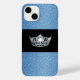 Ce boîtier de téléphone est montré dans l'iphone 14 coque et est montré avec une fausse impression de parties scintillant en bleu avec une couronne d'argent sur une bande d'accent noir. Customisez ce boîtier téléphonique avec du texte, ou choisissez un autre boîtier téléphonique, et ajustez les éléments de conception si vous le souhaitez. Acheter tel quel. Crown Image tous droits réservés VOS et miennes