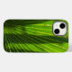 Ce Coque iPhone 14 présente les ombres d'une façade de scie de palmetto sur un arrière - plan d'une façade de palmetto. Les ombres forment des bandes douces à travers les bandes vertes détaillées de ce palmier tropical, avec des frondes en forme de gros ventilateurs.