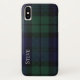Joli coque iPhone X fait dans le bleu foncé et vert Black Watch tartan plaid. Personnalisez le texte blanc, en courant sur le côté gauche, pour vous-même ou comme une excellente idée cadeau. Une façon élégante de protéger votre appareil électronique.