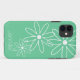 Fleur de marguerite lunaire en blanc et vert menthe. Coque iPhone 11 personnalisé. Joli imprimé floral blanc et joliment conçu pour les femmes et les filles branchées. Couleur arrière - plan personnalisable. Idée cadeau d'anniversaire chic et moderne.