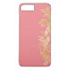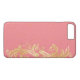 Magnifique iPhone 7 Plus coque fait dans un rose saumon, avec des graphiques de petits pois de couleur or et une floraison d'or, sur le côté droit du coque. Customisez d'ajouter le texte que vous voulez à ce joli coque.