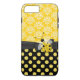 Coque élégante pour iPhone 7 Plus, avec un motif damassé jaune et blanc sur la partie supérieure de la coque et un motif à pois jaune sur fond noir sur la partie inférieure. Des graphismes d'un ruban noir et d'un nœud traversent la coque entre les deux fonds et sont ornés de graphismes d'une coccinelle jaune et noire. Une jolie façon de protéger votre iPhone 6 et avoir l'air élégant aussi, et fait une excellente idée de cadeau.