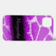 Coque à motif animal brillant dans les tons noir, blanc et violet audacieux. Personnalisez cet objet avec votre propre nom. Lit actuellement Margarita. Ce motif original de Sarah Trett, est basé sur le dessin trouvé sur une girafe avec un moiré mi-teint point gain motif superposition.