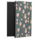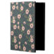 Le coque ipad à motifs floraux chic arbore des fleurs roses de corail et des feuilles verdoyants sur un arrière - plan bleu nuit sombre et fumé.
