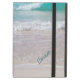 Joli coque iPad Air avec stand intégré, avec une belle photo de vagues ondulantes, sur le rivage. Texte de script couleur Aqua, sur le côté droit est prêt à personnaliser pour vous-même ou comme une belle idée cadeau.