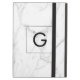 Caisse en pierre de marbre blanche chic personnalisée d'air d'iPad de monogramme. Conception de luxe avec votre propre lettre initiale faite sur commande. Ajoutez votre lettre nommée ou décorée d'un monogramme. Idée de cadeau chic d'anniversaire ou de Noël pour les hommes et des femmes. Typographie moderne avec la frontière élégante et la texture luxueuse d'arrière - plan. Également pour l'iPad 2 3 4 etc.
