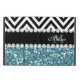 PARTIES SCINTILLANTES BLEU-CLAIR GIRLY (EFFET IMPRIMÉ) AVEC LE MOTIF NOIR ET BLANC DE CHEVRON, DÉCORÉ D'UN MONOGRAMME AVEC VOTRE NOM, VOTRE INITIALE OU MONOGRAMME SUR UNE RAYURE NOIRE OU BANDE AVEC UNE FRONTIÈRE DES DIAMANTS BLANCS IMPRIMÉS. CONCEPTION MIGNONNE FRAÎCHE À LA MODE ET CHIC POUR ELLE, L'AVANT-GARDISTE, LE FASHIONISTA