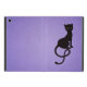 La caisse élégante d'air d'iPad de chat avec une belle illustration d'un chat noir mauvais aimable avec rougeoyer observe sur une montre de nuit dans la brume pourpre foncée.