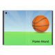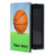 Ajoutez tout autre texte spécial de l'enfant le nom ou à ce cadeau lumineux et coloré d'amusement de basket-ball de thème. Grand pour les enfants qui aiment les cercles extérieurs, le jeu sur une équipe ou juste l'amour obtenant l'exercice physique. Arrière - plan extérieur d'herbe verte et de ciel bleu avec le b-ball rond orange.