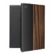 Beau coque de style iPad folio, avec des graphiques d'un look de bois brun, courant au milieu du coque. Un look métallique noir, sur les bords avant et arrière, du coque, a une bande de couleur argent comme bordure. Personnalisez le monogramme d'une lettre, sur le devant, pour répondre à vos besoins. Grande idée cadeau