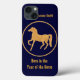 Un chic et personnalisable Barely There coque pour protéger votre iPad Air, avec un motif de chevaux dorés sur un arrière - plan bleu profond que vous pouvez facilement changer si vous le souhaitez. Le motif du cheval a été peint à la main par Judy Adamson.