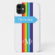Coque iPhone 11 | Arc-en-ciel rayé avec Monogramme