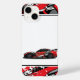 Ce coque iPhone 14 est montré en couleur blanche avec une impression d'art auto race. Customisez cet objet ou achetez tel quel. Image stock vecteezy.com