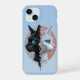Coque iPhone 15 Black and White Cat Split Portrait With Blue Eyes