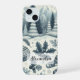 Coque iPhone 15 Bleu foncé, Bleu blanc Scène d'hiver Palmiers Floc