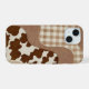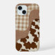Coque iPhone 15 Checkered Brown Wavy Mocha Aesthetic Cow Print Cut
