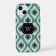 Coque iPhone 15 Chic Ikat de Luxe Noir Menthe Diamant Monogramme