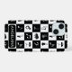 Conception contemporaine avec motif à chèque noir et blanc avec chaque carré contenant un instrument de musique ou une note musicale,