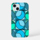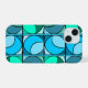 Coque Iphone au design seventies dans les couleurs bleu, vert et turquoise