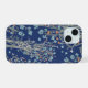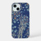 Un bel étui de téléphone boho avec des fleurs sauvages en bleu clair et orange sur un fond texturé marine.