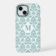 Decorative damask in a vintage influenced pattern, in teal color detail on a background color of your choice, with letter center to personalize.
