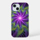 Coque iPhone 15 Fleuron vert violet Art Abstrait fractal moderne