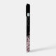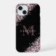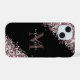 Parties scintillant dorée rose de style moderne et texte doré rose sur le script de nom monogramme noir iphone 14 coque. Personnalisez ceci en ajoutant votre nom et Initial. La police et la couleur peuvent également être modifiées à l'aide de l'outil de personnalisation. Parfait pour une fille qui veut un appareil téléphonique unique et qui se démarque.