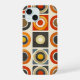 Cette oeuvre présente un motif dynamique et audacieux de cercles concentriques et de carrés disposés dans un format de grille structurée. Le design présente une palette de couleurs d'inspiration rétro avec des oranges chaudes, des marron foncé, des jaunes et des crèmes, créant une atmosphère nostalgique mais moderne. Chaque cercle est parfaitement centré au sein de son carré, les motifs répétitifs créant une composition rythmique et équilibrée. L'utilisation de couleurs fortes et contrastées et de formes géométriques donne à l'oeuvre une apparence dynamique et visuellement attrayante, rappelant le design moderne du milieu du siècle.